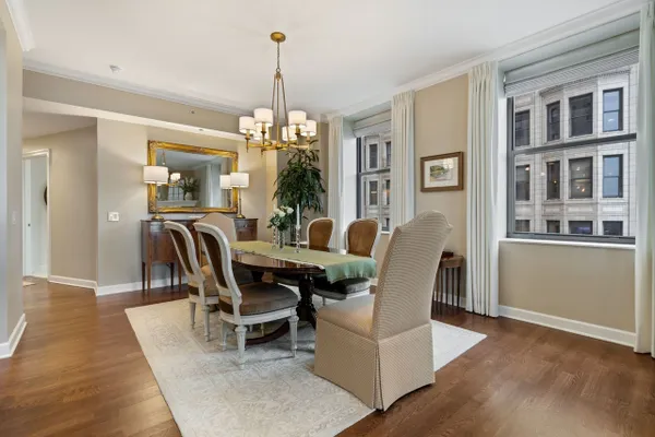 With forever unobstructed park, lake and city views from 11 floors above Michigan Avenue, this expansive northeast corner residence offers panoramic views of many of Chicago's most celebrated landmarks, including Millennium Park, Grant Park, Maggie Daley Park, BuckinghamFountain, Navy Pier, Lake Michigan, the Art Institute, Shedd Aquarium and Field Museum. Spanning 3350 square feet, this 4-bedroom, 4-bathroom home (three ensuite) plus an additional den-currently utilized as a private theater room-offers a refined, highly functional layout designed for both everyday living and elevated entertaining. Approximately 50 feet of east-facing windows flood the open-concept living and dining areas with natural light and frame unobstructed skyline and park vistas. A fireplace elegantly anchors these spaces, creating a warm and inviting sitting area without detracting from the sweeping views. A dedicated office with east-facing views and custom built-ins overlooks the lake and Buckingham Fountain, offering an inspiring work-from-home backdrop. The custom-designed, commercial-grade kitchen is tailored for both serious cooking and effortless hosting, featuring quartzite countertops, extensive cabinetry with pull-out drawers and thoughtful organizational systems, SubZero, Wolf and Miele appliances, and an oversized island perfectly positioned to take in the stunning views. A combined butler's pantry and wet bar with wine refrigeration further enhances functionality while maintaining a seamless aesthetic. Additional features include hardwood floors, detailed millwork, a large laundry room, abundant in-unit storage, one heated garage parking space and two sizable storage cages. Residents of the iconic Metropolitan Tower enjoy full-service amenities including 24-hour doorstaff, on-site management, an updated 2000 square foot fitness center with steam room and sauna, and a beautiful two-story community room. Opening in Spring 2026, the building is currently undergoing a fully-funded, complete renovation of its outdoor terrace, which will include multiple lounge areas, fire pits, grilling stations and thoughtfully designed gathering spaces - further enhancing the lifestyle experience along Chicago's prestigious Cultural Mile.