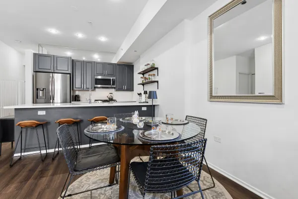 Welcome to this bright and spacious 2 bedroom, 2 bathroom corner unit in the iconic Metropolitan Tower - a historic 1924 landmark address on one of Chicago's most celebrated boulevards. Thoughtfully laid out, this unit welcomes you through a generous foyer that opens into a flowing floor plan. The heart of the home is an impressively long galley kitchen offering abundant cabinetry and counter space, which connects to a dining area and living room ideal for both relaxing and entertaining. The well-equipped kitchen features stainless steel appliances including a range, microwave, dishwasher, refrigerator, wine fridge, & disposal. The primary suite is privately situated and complemented by a full ensuite bath. The second bedroom is generously sized and conveniently located near the second full bathroom. A dedicated in-unit laundry room adds everyday convenience you'll truly appreciate. With a full-time doorman, fitness room, and lobby, plus steps-away access to Grant Park, Millennium Park, the Art Institute, and world-class dining, this is a rare opportunity to own a piece of Chicago history with all the comforts of modern living. 1 transferable parking space lease available, attached and heated garage.