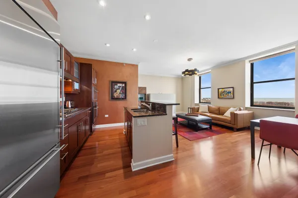 Welcome home to iconic Metropolitan Tower - a 1924 landmark where vintage grandeur meets contemporary comfort on Chicago's celebrated Cultural Mile. Unit 1001 is a stunning east-facing 2BR/2BA of 1,259 SF with breathtaking views of Grant Park, Lake Michigan, and Monroe Harbor from both the living room and primary bedroom. . . . . . . . . . . This is no cookie-cutter condo. Gorgeous hardwood floors, a gas fireplace, and an open kitchen/living room floor plan set a warm, elegant tone. The renovated primary bath stuns with marble and stone and a double vanity - truly beautiful. Full-size washer/dryer in-unit. The building's 2010 renovation brought in-unit sprinklers and a four-pipe zoned HVAC system - the best of vintage charm and modern function. . . . . . . . . . . Building amenities are exceptional: soaring stone and brass lobby, original elevator doors intact, newly renovated 2-level community rooms, a huge fitness center, and a brand-new sun deck opening this spring. Book nook, on-site management, valet/dry cleaner, and 24-hour door staff. Over $4MM in reserves. Attached garage with deeded parking included - a $35,000 value. . . . . . . . . . . Location is simply extraordinary: half a block to Symphony Center and the Art Institute, directly across from Grant Park and Buckingham Fountain, one block to the Auditorium and Studebaker Theaters. University, Chicago, and UL Chicago clubs nearby. Effortless commuting via Lake Shore Drive, Ida B Wells, Michigan Ave buses, and CTA. Live at the heart of Chicago's cultural life.